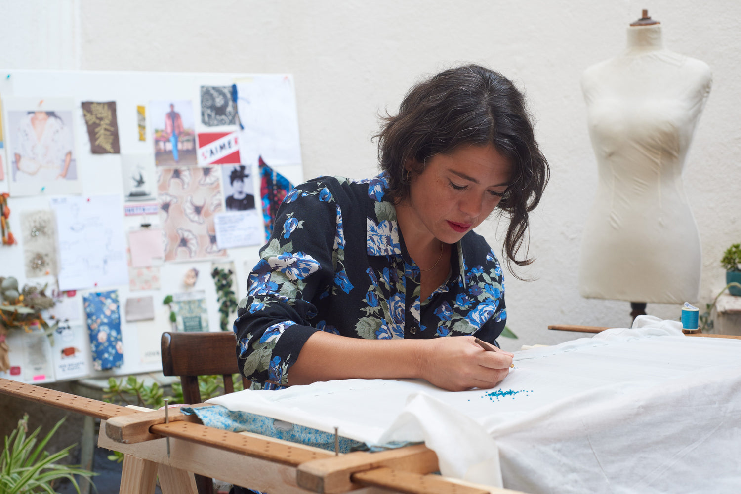 "I discovered embroidery in Calcutta and learnt to embroider in Hakola, a Bengali village in the middle of the jungle, accessible only by bicycle. After two weeks in front of the frame, I understood that my future life had something to do with it".